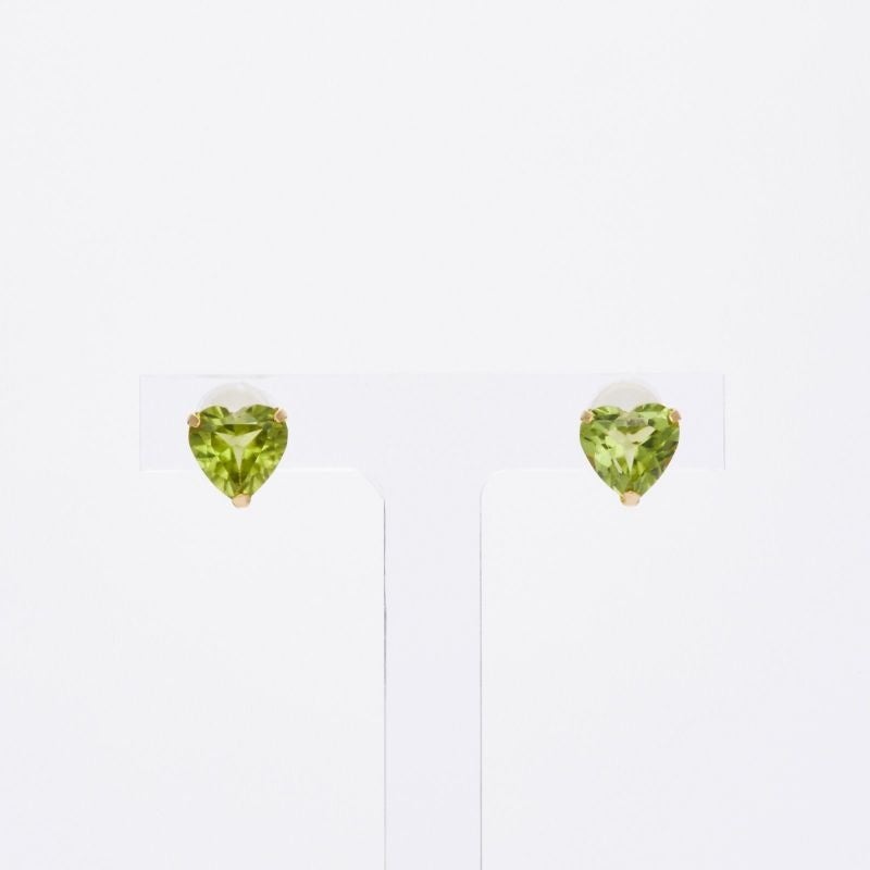 K18イエローゴールドのペリドットピアス。ハートシェイプのペリドットが可愛らしく、爽やかな色のピアスです。
