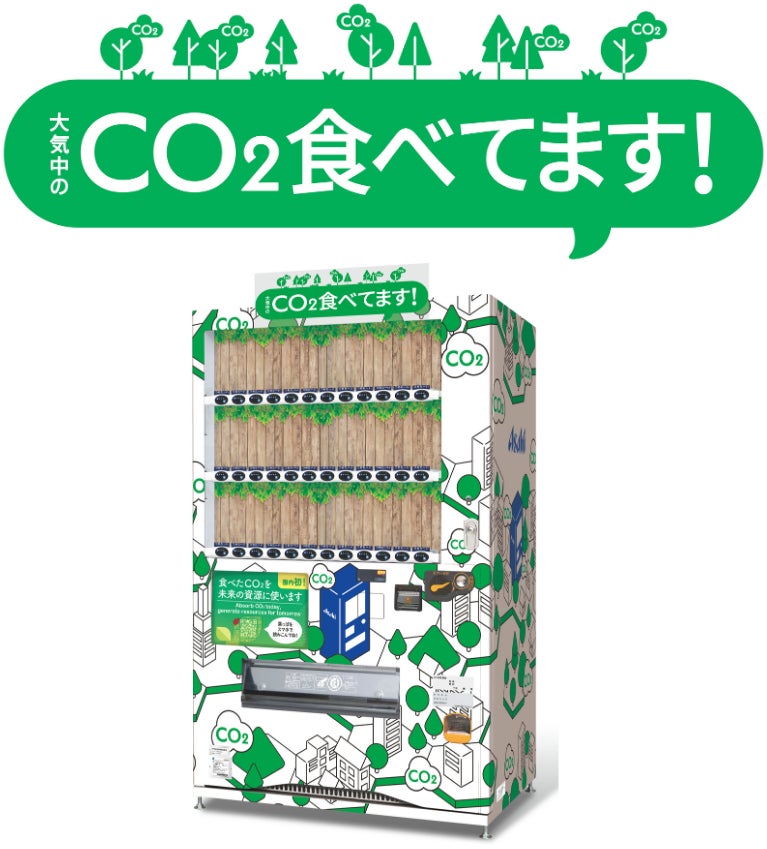 また、アサヒ飲料株式会社が展開する「CO2を食べる自動販売機」が置かれています。