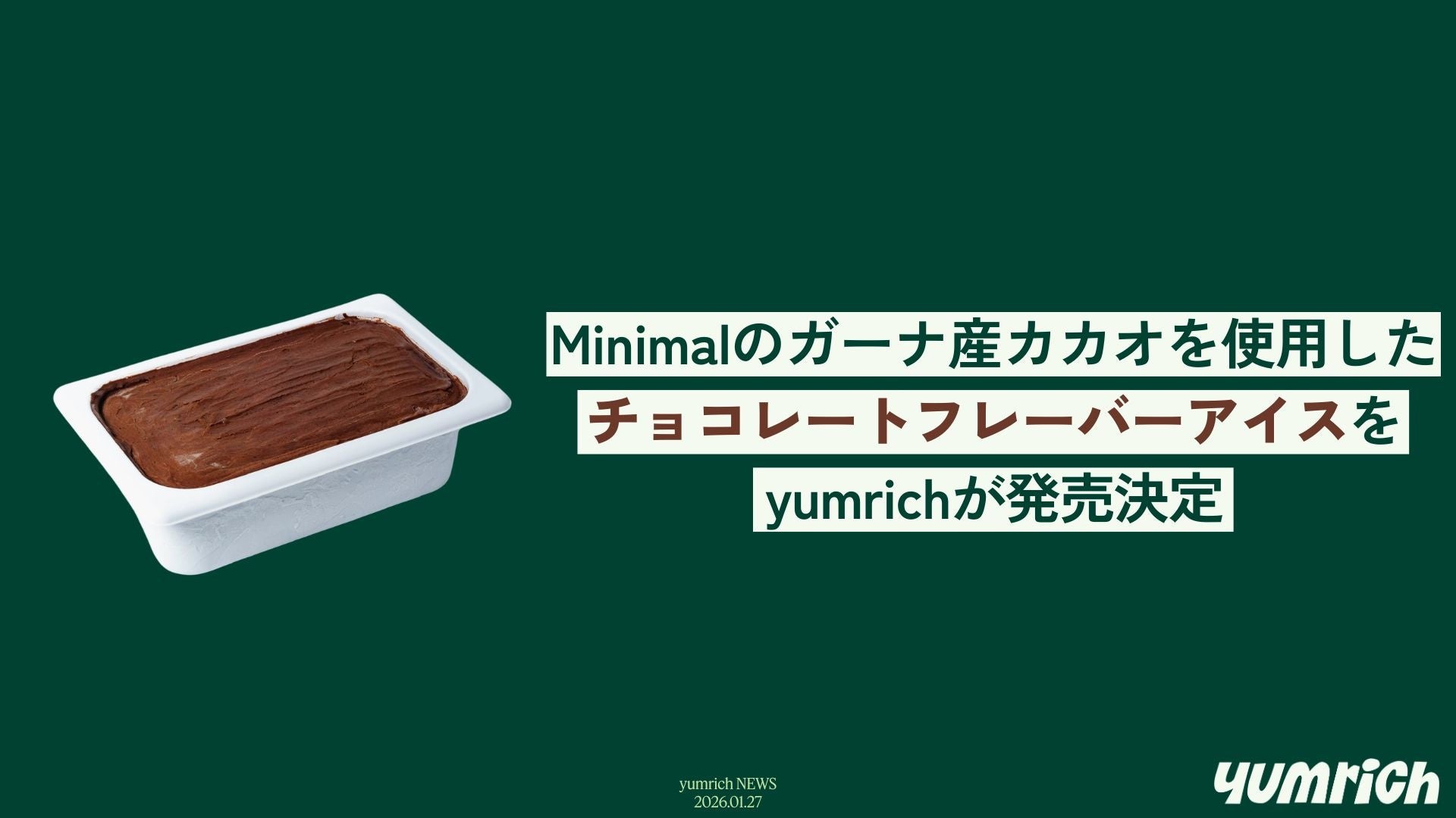 プラントベースアイスブランド「yumrich(ヤムリッチ)」は、スペシャルティチョコレートブランド「Minimal – Bean to Bar Chocolate – (ミニマル)」のガーナ産カカオを使用した、チョコレートフレーバーの新作アイスを発売します。