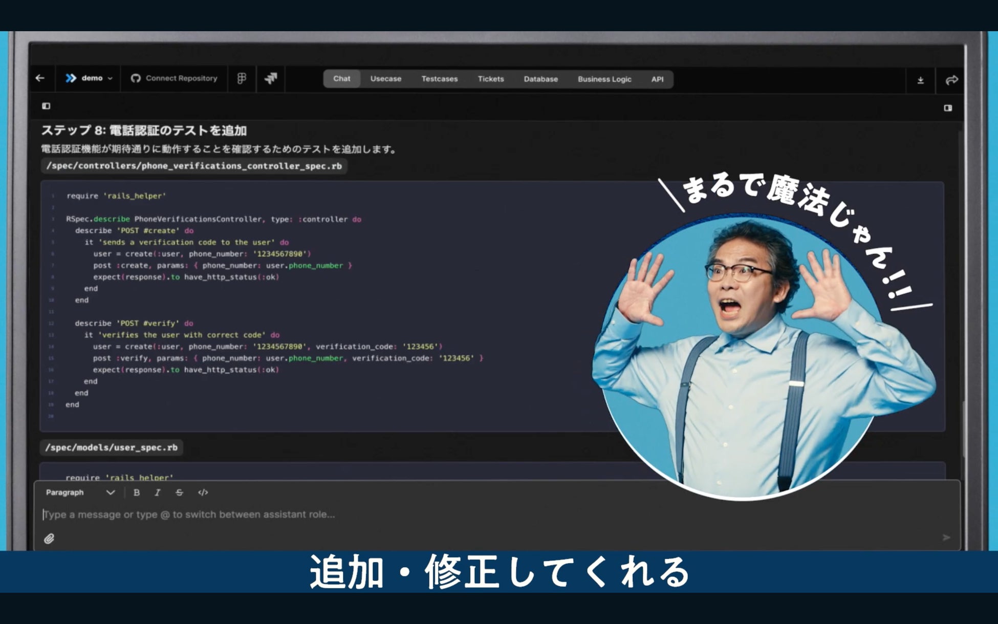 データベース設計、ビジネスロジック、API設計書といった複雑なドキュメントが、瞬時に正確かつ効率的に作成され、開発プロセスを次のレベルへと引き上げます。