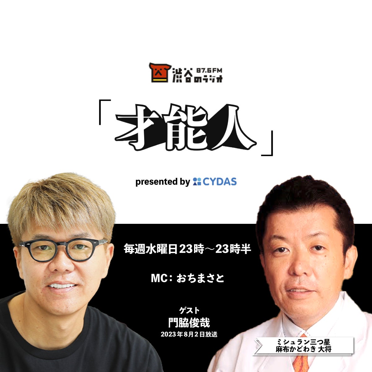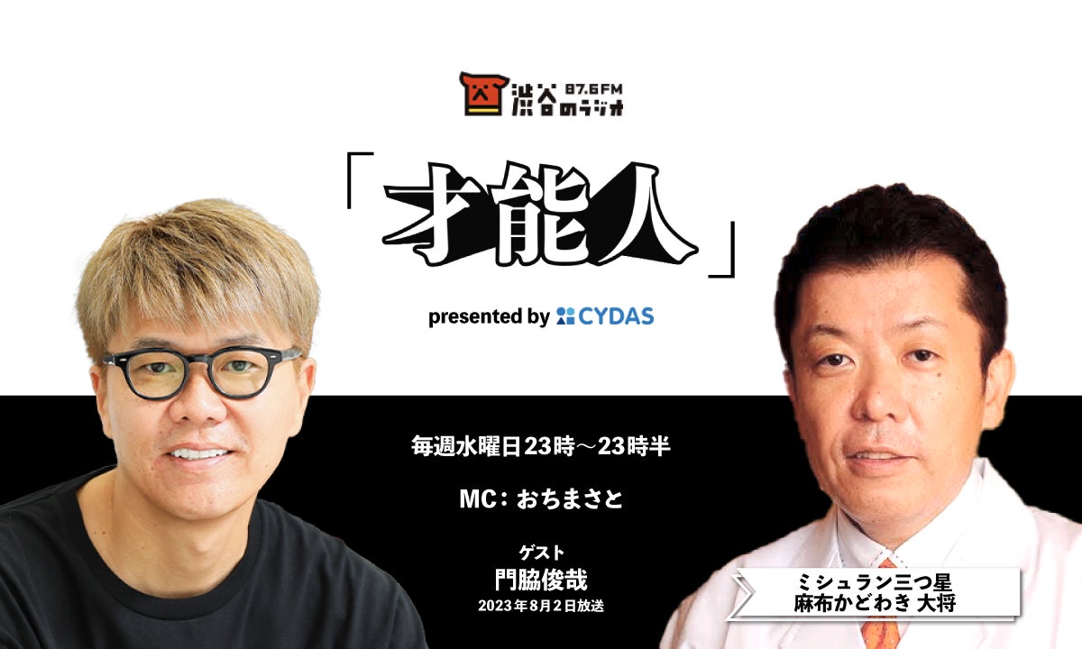 おちまさとのラジオ番組「才能人」、今週のゲストは4年連続ミシュランの名店「麻布かどわき」 オーナーシェフの門脇俊哉