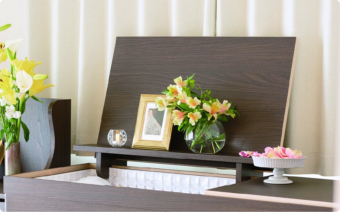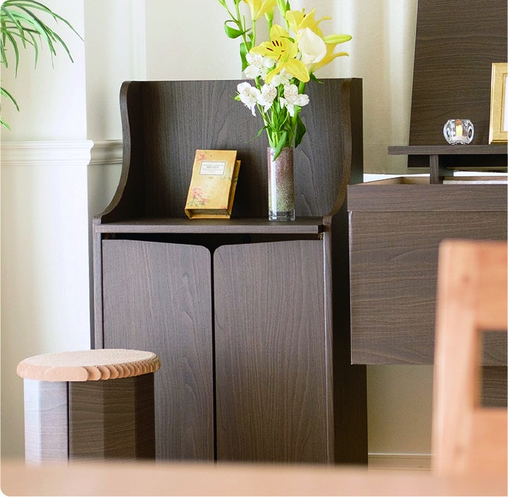骨壷を納める棺とお揃いのラックは、埋葬後もサイドボードとして利用可能