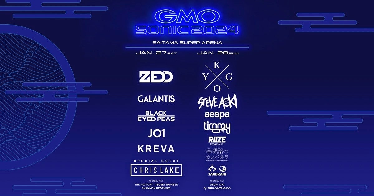 The Shuzo Ohira Management Team of Star Ray Productions Inc. is pleased to announce that a contrakt has been set up for DJ SHUZO to perform as the opening act at GMO SONIC Saitama Super Arena on 2024.1.28 GMO SONIC.