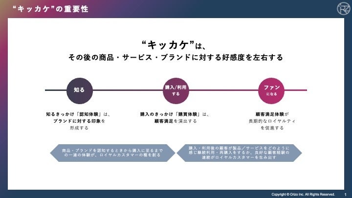 顧客が商品やサービスを認知してからファンになるまでの過程で、最高のキッカケを演出することがロイヤルカスタマーの創出に繋がる。