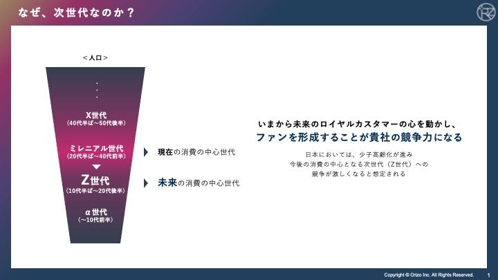 日本においては少子高齢化が進み、今後の消費の中心となる次世代(Z世代)への競争が激しくなると予想される。
