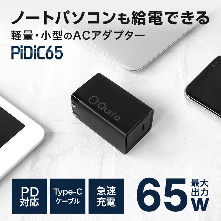 【先行販売開始】ノートパソコンもスマホもこれひとつで給電OK! 軽量・小型のACアダプター PiDiC65