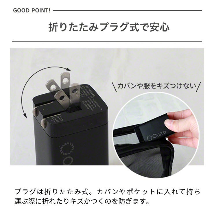 ・折りたたみプラグ式なので、カバンやデバイスを傷つけない