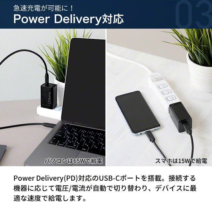 ・PD(Power Delivery)対応でスマホの急速充電が可能