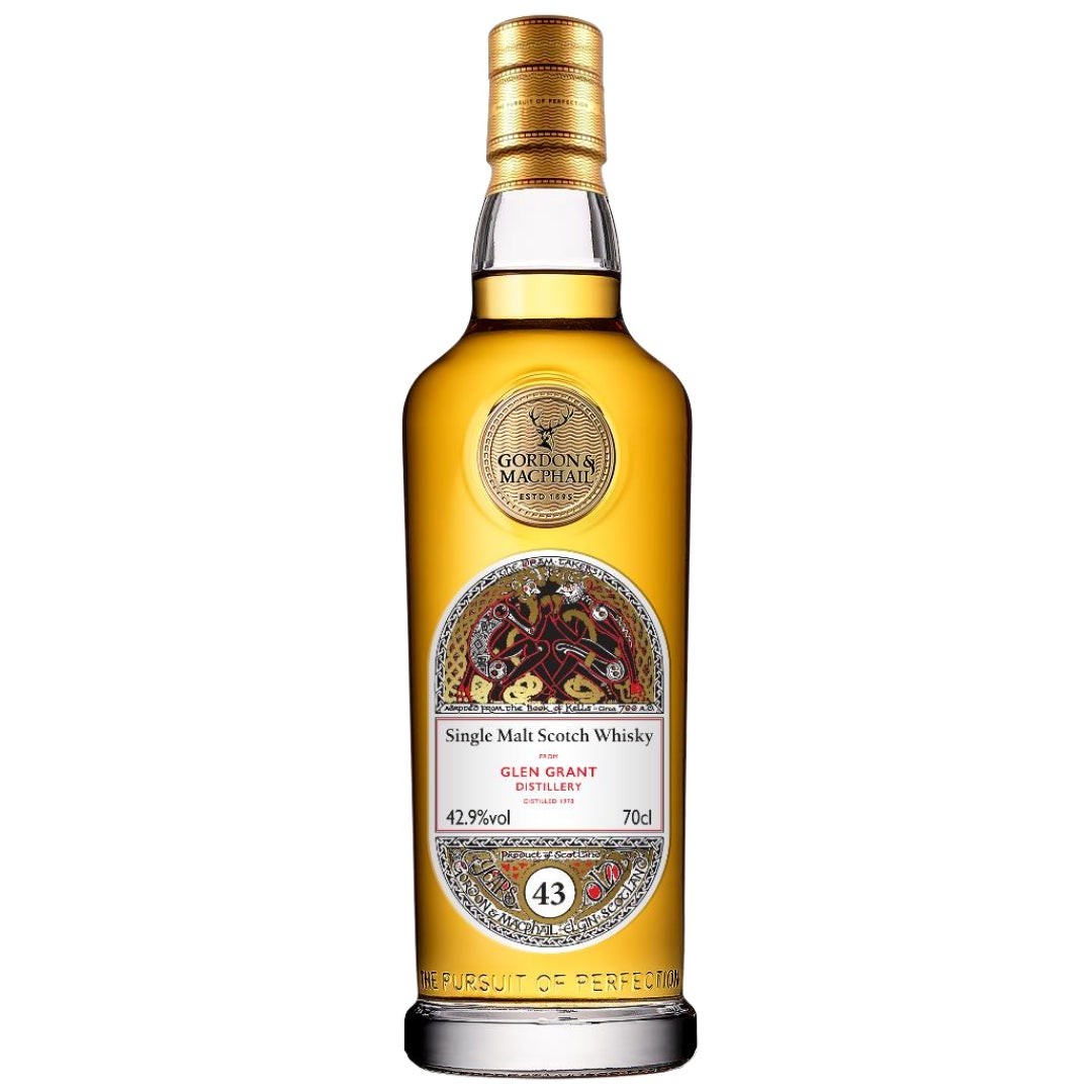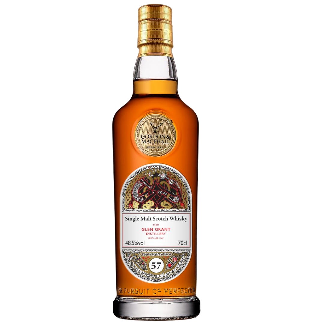 本シリーズは、9世紀の写本『ケルズの書』の装飾様式に着想を得た意匠で、グラスを掲げる二人の“ドラム・テイカー”が象徴。1980年代初頭には「マクファイルズ 45年」にも採用されるなど、GMの長熟表現を体現してきたラベルです。