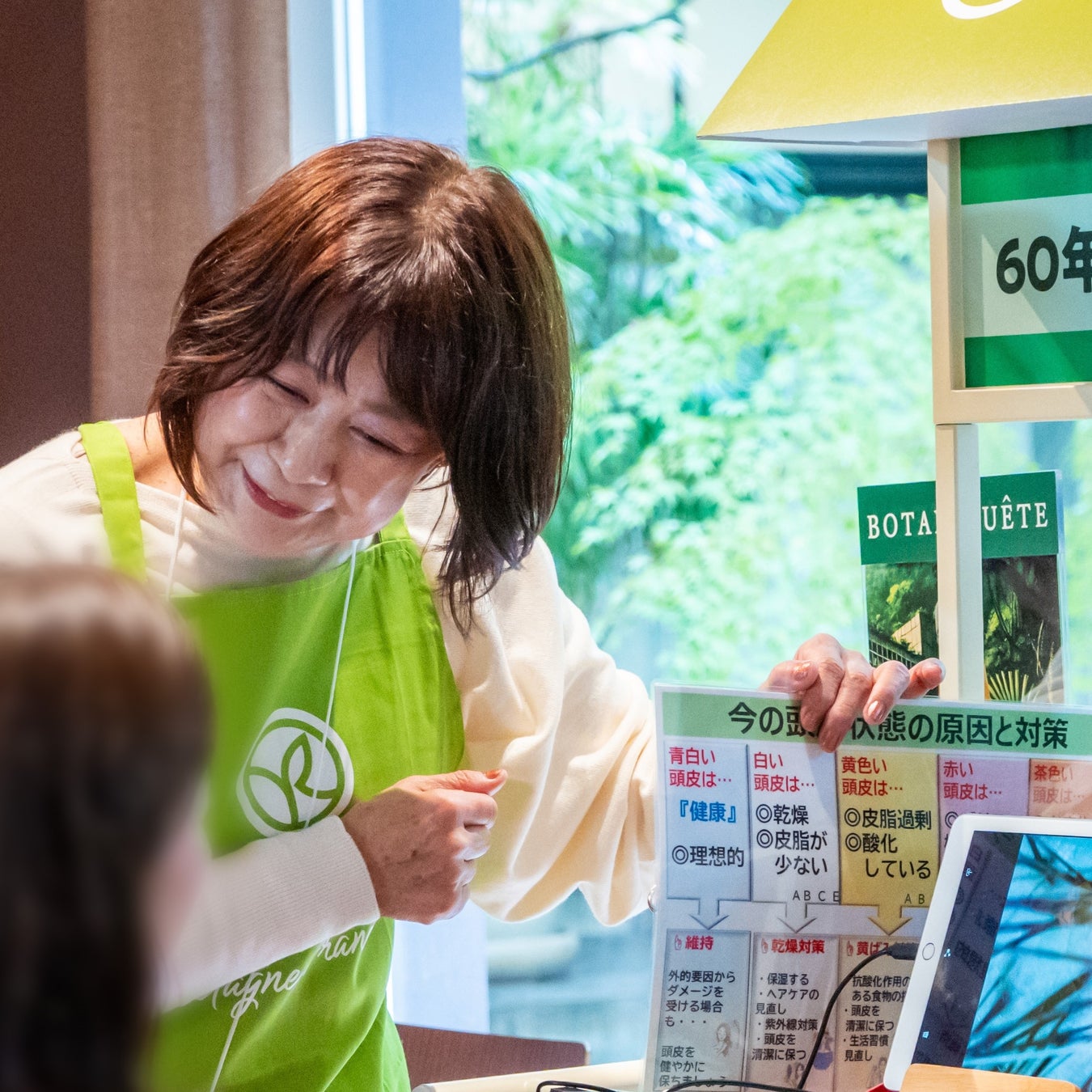 イヴ・ロシェでは様々なお悩みに対応したヘアケア、ヘルシースカルプシリーズを展開しています。イベントではイオン、イオンスタイルの従業員から立候補した20人ほどの「イヴ・ロシェ アンバサダー」が、約80名の来場者の方へ頭皮チェックを実施。診断結果に応じ、お客さまに合った最適な製品をご案内、大変ご好評いただきました。当日は11月22日(金)に発売した「ジェントル ミルキーチェスナッツシリーズ」もご紹介致しました。
