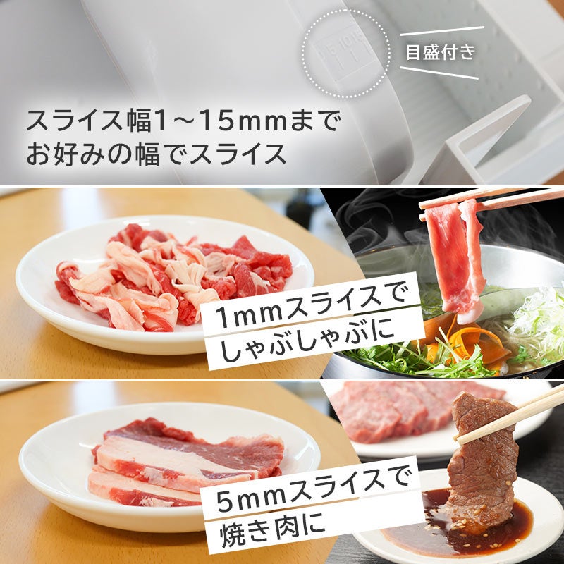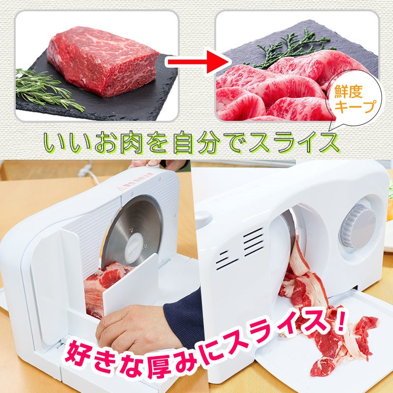 本製品は自宅でお肉を自由自在に薄切りができるコンパクトミートスライサーです。