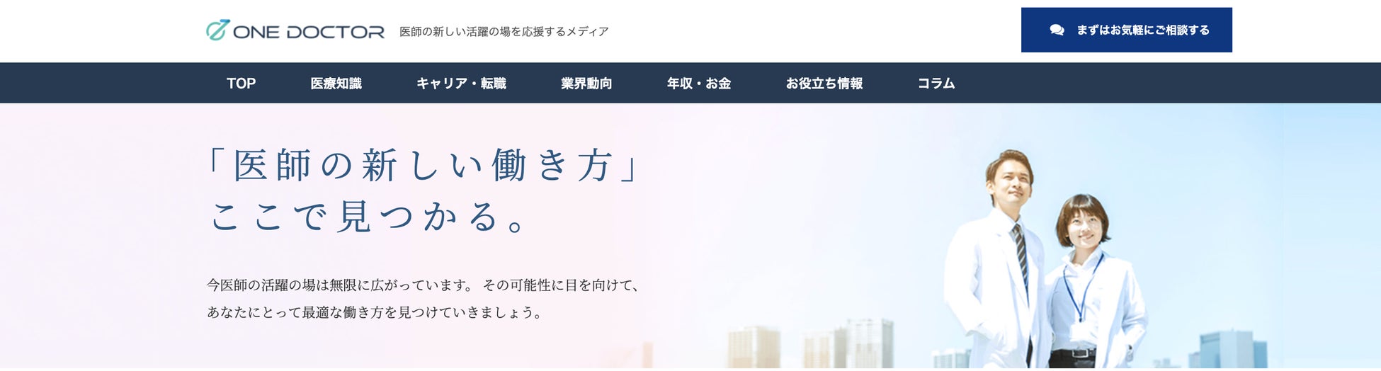 今、医師の活躍の場は無限に広がっています。ONE DOCTORは ”「医師の新しい働き方」ここで見つかる” をテーマに、医師にとって最適な働き方に関する情報などを発信しております。