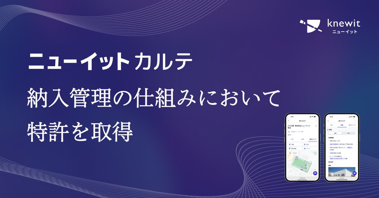 Supply Chain Re-engineering(SCR、サプライチェーン・リエンジニアリング)に挑戦する株式会社knewit(読み:ニューイット、本社:東京都千代田区、代表取締役:小川直哉、以下「当社」)は、当社の提供するテーラーメイド型ソリューション「ニューイット」の納入管理モジュールである「ニューイットカルテ」において特許(特許第7595376号)を取得いたしました。