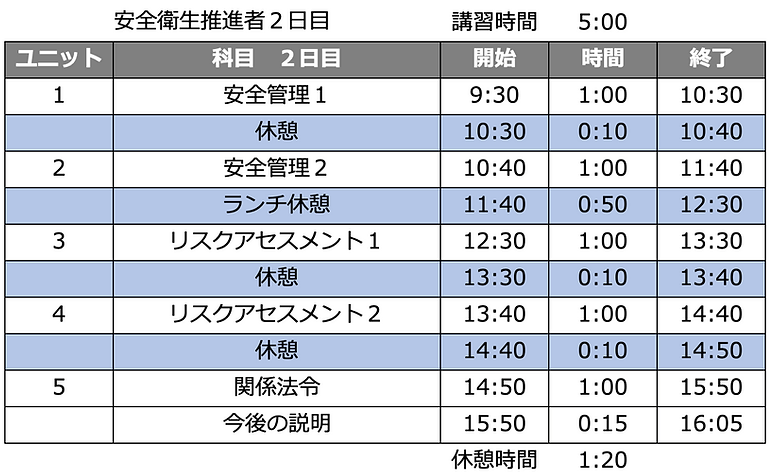 ■開催日程 (安全衛生推進者の御受講の方は1日目と2日目両方をご予約下さい。)