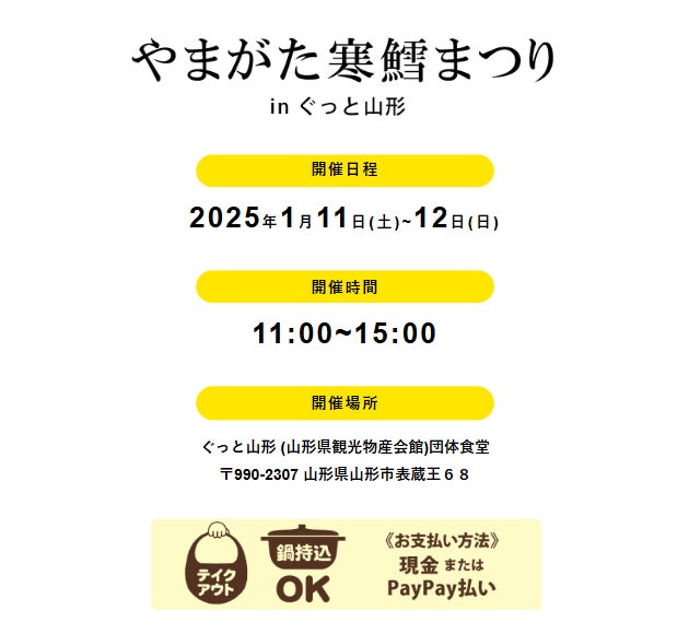 寒鱈まつりを"ぐっと山形"で山形市出張開催 事前予約開始2025/1/11(土)-12(日)【庄内観光物産館(山形県鶴岡市)】
