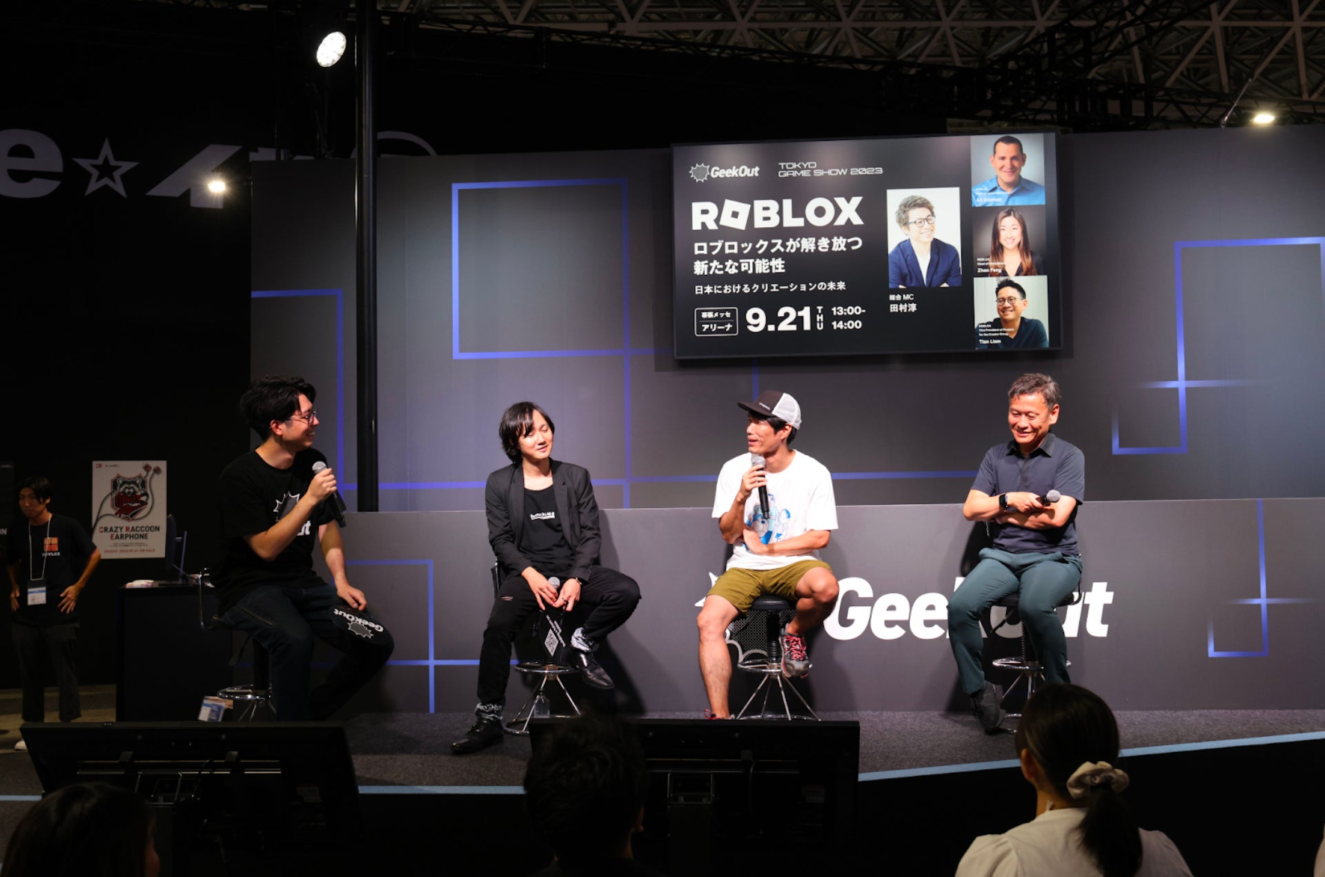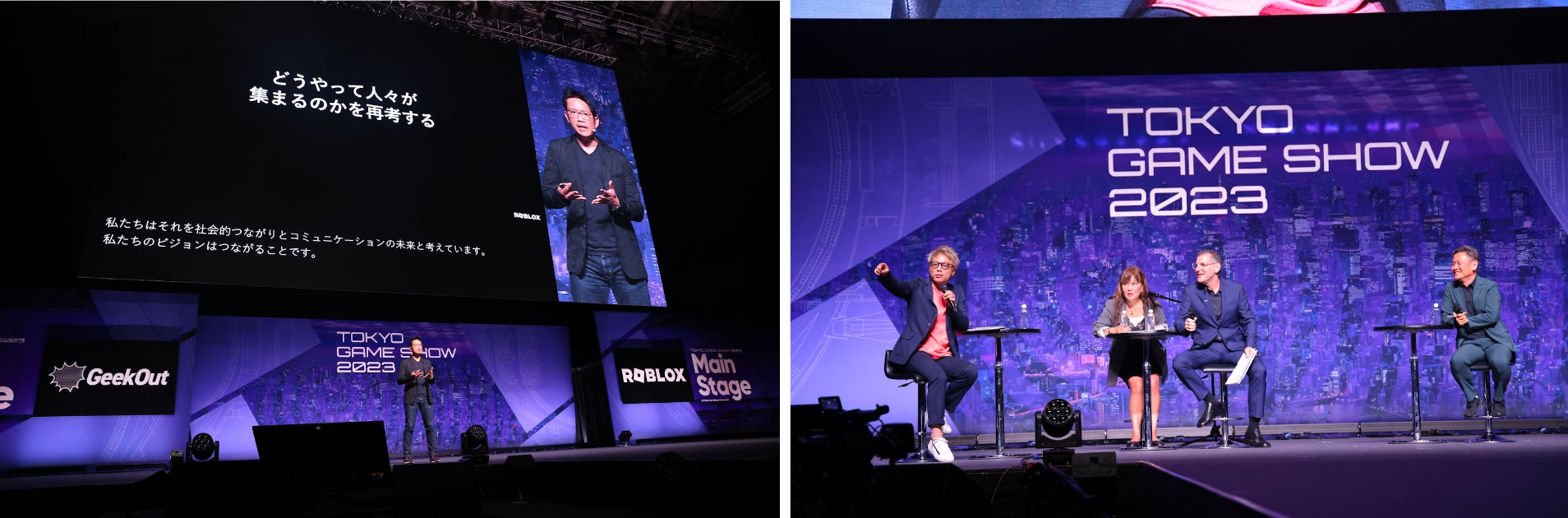 ビジネスデイの初日には、MCに田村淳氏を迎え、ステージイベント「Robloxが解き放つ新たな可能性:日本におけるクリエーションの未来」をGeekOut主催にて開催しました。