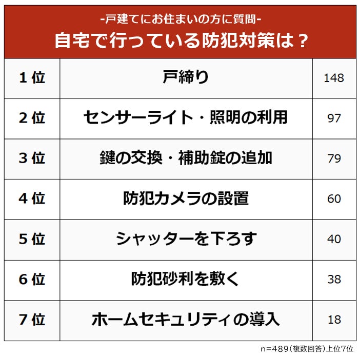 【一戸建ての防犯対策ランキング】経験者489人アンケート調査