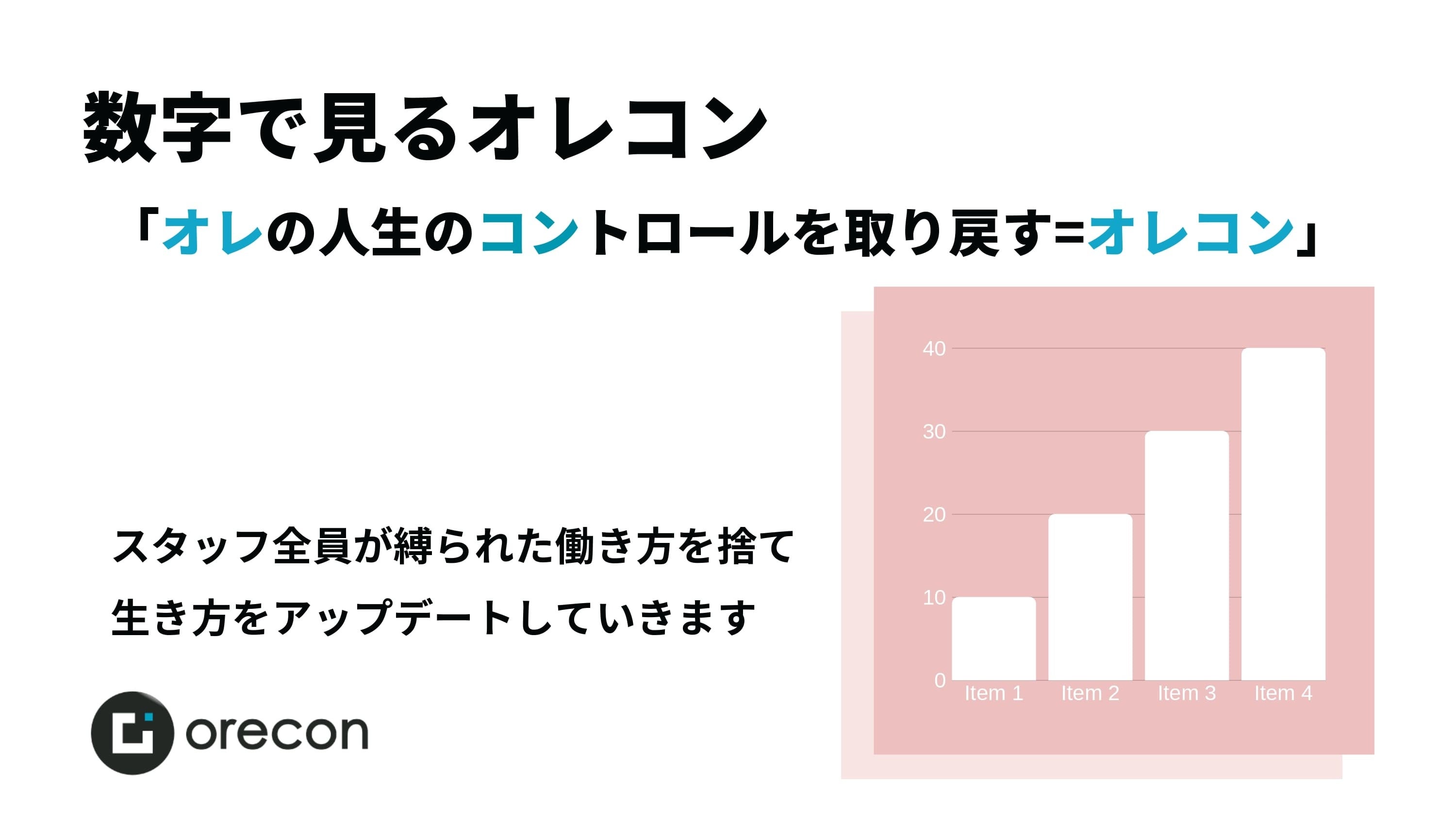 オレコンの社名の由来は、「オレの人生のコントロールを取り戻す」という想いから来ています。