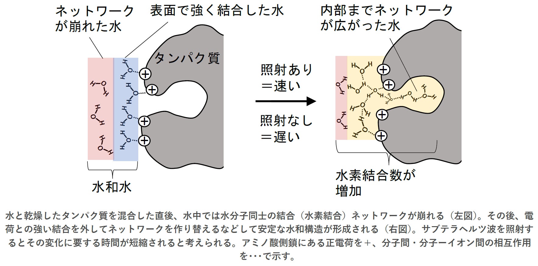・サブテラヘルツ波の照射でタンパク質の水和が促進されることを発見
