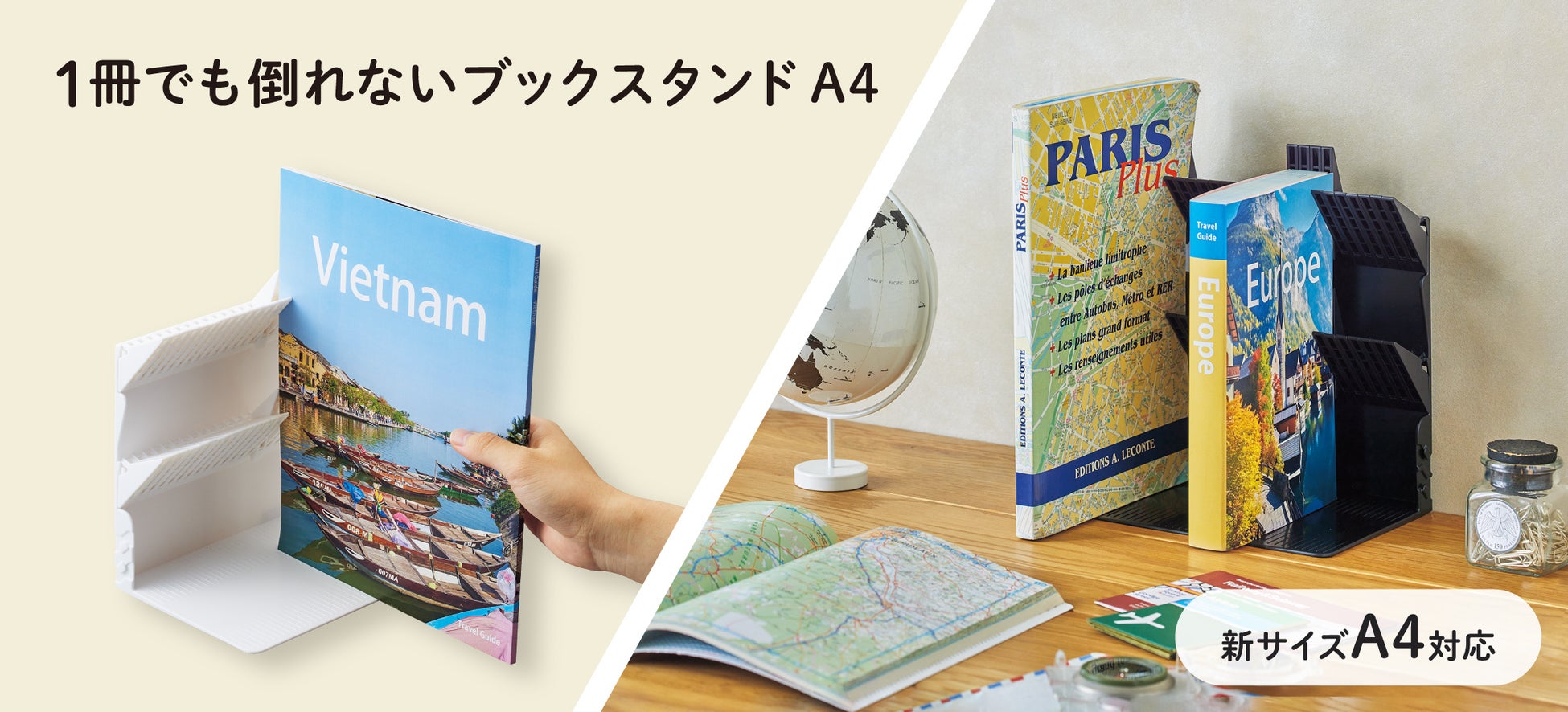 「1冊でも倒れないブックスタンド」に A4ファイルや雑誌を収納できる新サイズを追加します。