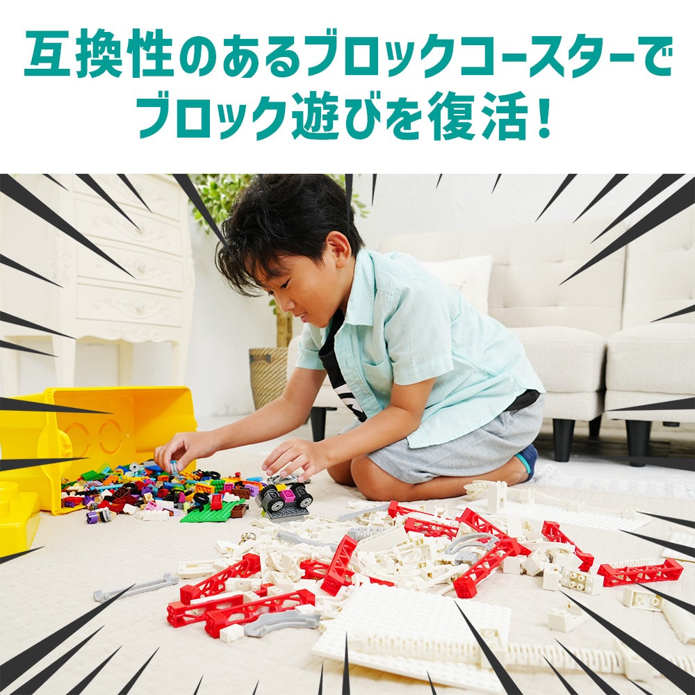 一般的なブロックではない構造のブロックも付属し、コースを作っていく感覚で組み上げます。
