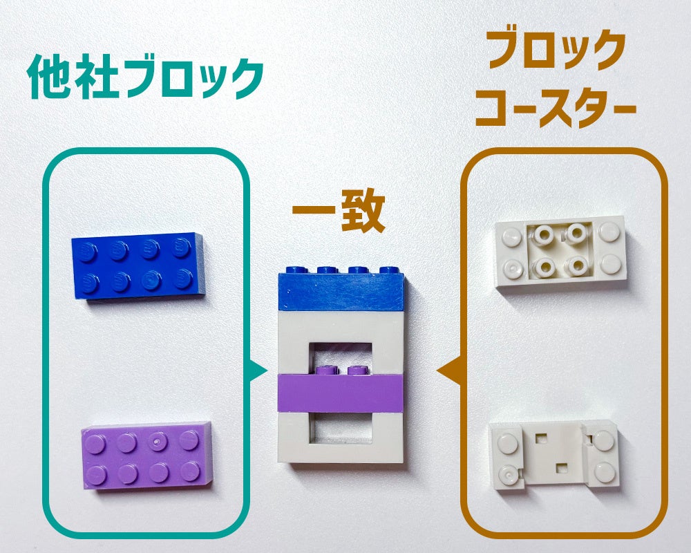 各社ブロック互換サイズ。廃棄されるブロックを少しで減らす狙いで製品化。ブロックコースターをMakuakeプロジェクトにて先行予約販売