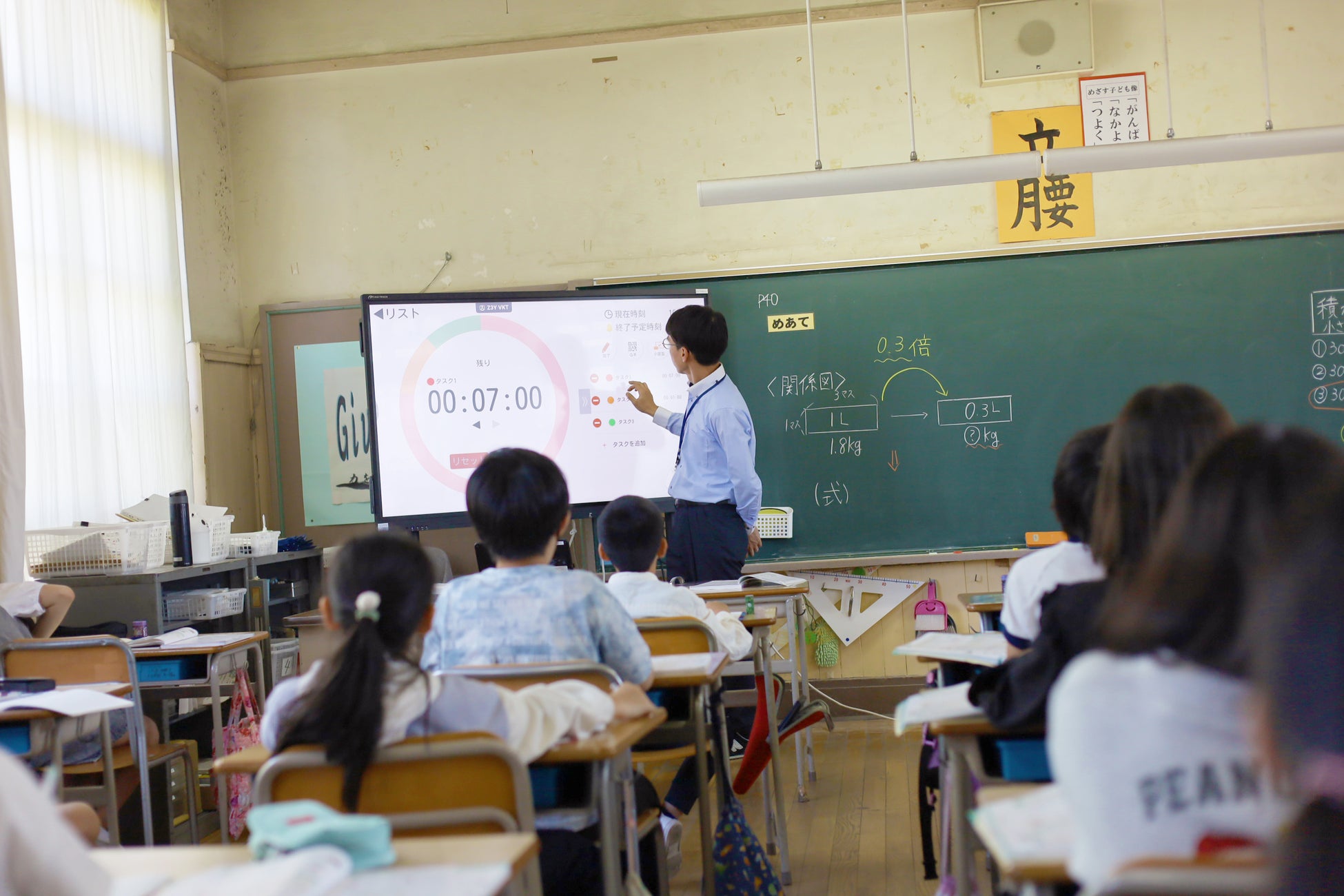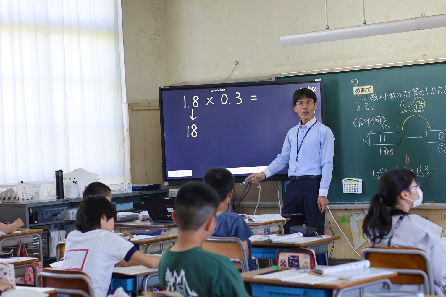 『以前の授業は、どちらかというと「先生が喋っていることを必死に聞いて、理解する」という“聴覚”に訴える授業でした。先生たちはチョークで黒板に板書するけど、黒板に書くことよりも喋ることの方が圧倒的に多く、子どもたちは先生が喋っていることを聞いてメモすることに必死だったと思います。しかし、現在の教育では、子どもたち一人ひとりが主体的に学び、考え、成長していくことが求められており、授業の主体者は“子どもたち”でなければいけません。先生たちは、あくまでも授業を進行するファシリテーター的な役目です。そんな授業においては、視覚でたくさんのことを訴えられるミライタッチは欠かせません。実際に、本校でミライタッチを導入後は、子どもたちが主体的な意見を発する場面が非常に多くなりました』(西川教頭)