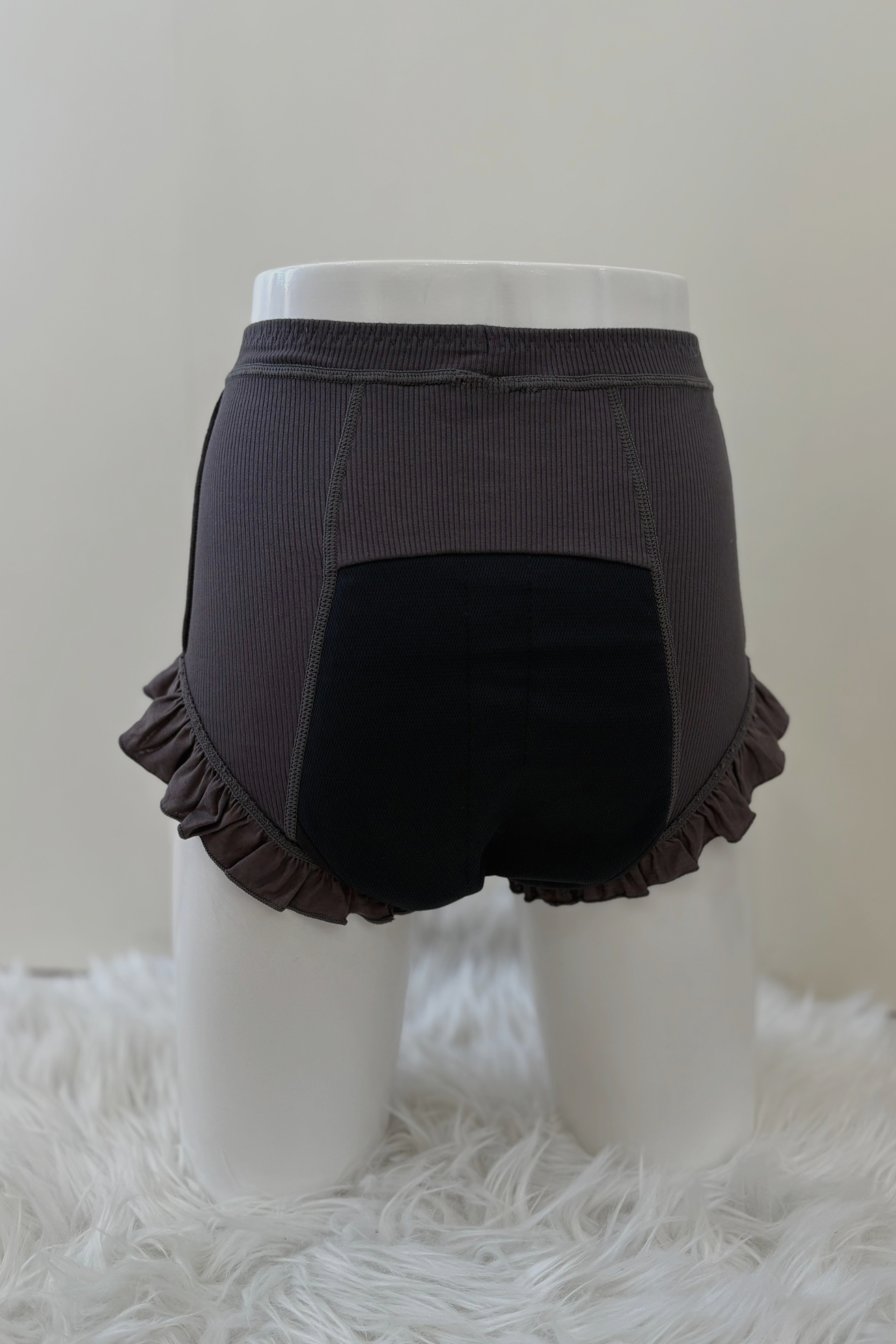 生理の日が楽しみになるような"ニュアンスカラーとフリル"がポイントのデザイン。