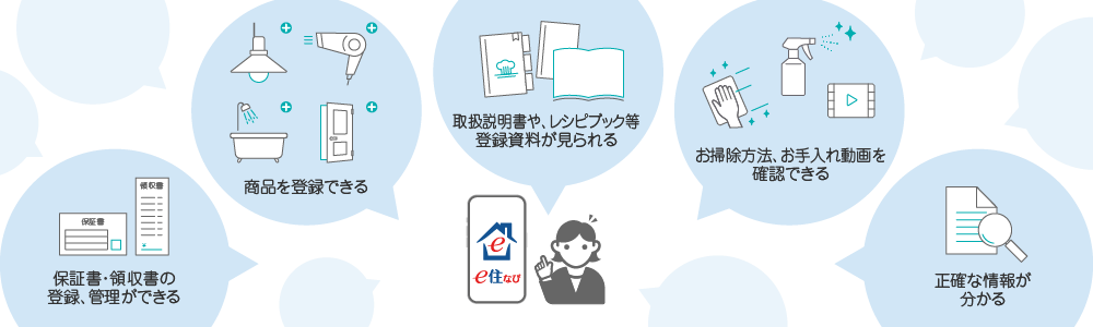「e住なび」(いーすまいなび)はご自宅にある設備や家電を登録することで「取扱説明書」や購入時期、保障期限などまとめて管理することが出来ます。
