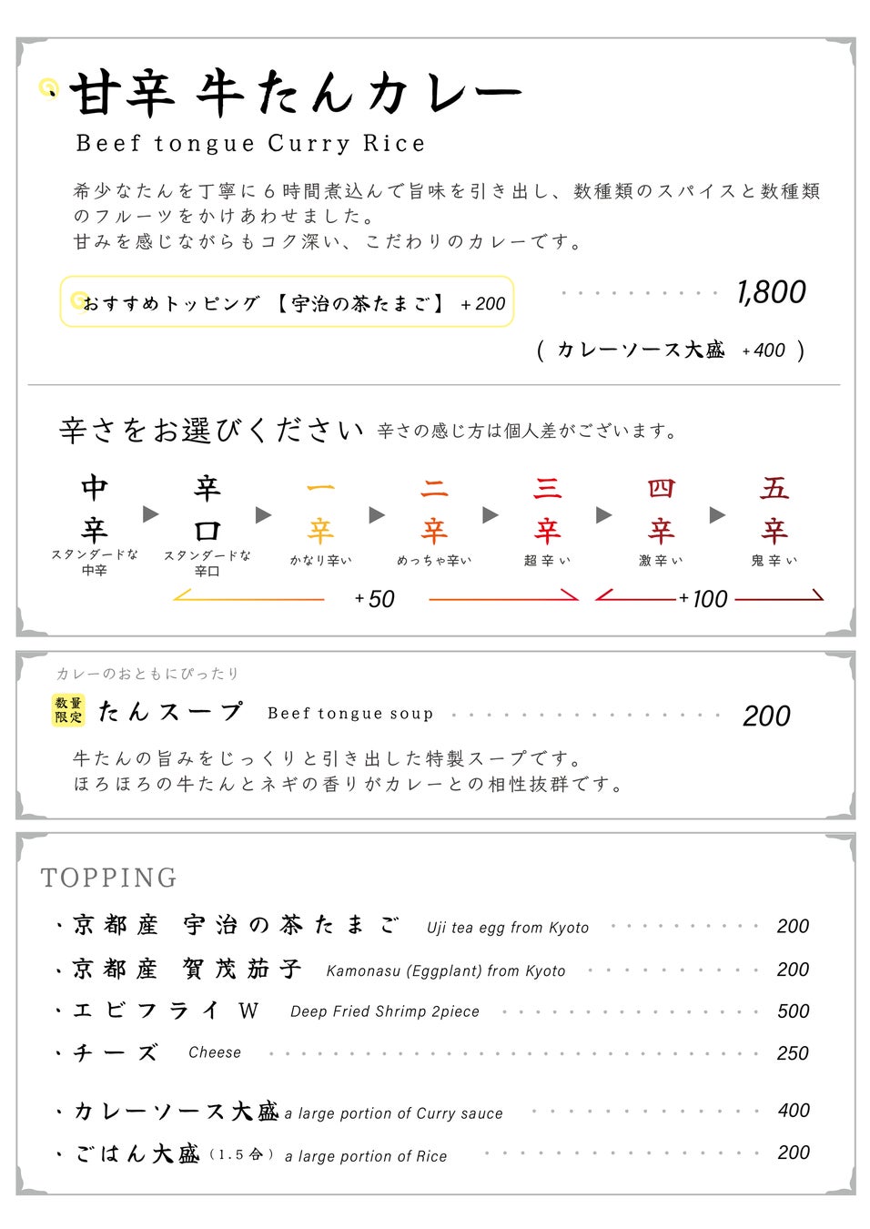 牛タンと和牛の旨味をじっくり引き出し、数種類のスパイスと数種類のフルーツをかけあわせた甘みを感じながらもコク深い,こだわりのビーフカレーです。