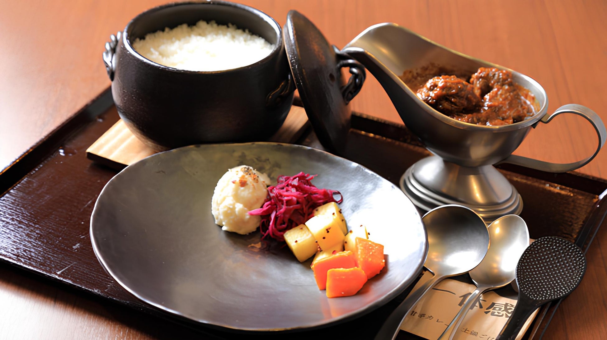 東京の銀座に本店を構える「一体感」。一合ずつ土鍋で丁寧に炊き上げるご飯と、嵐山店ならではの贅沢な「牛たんカレー」が名物です。