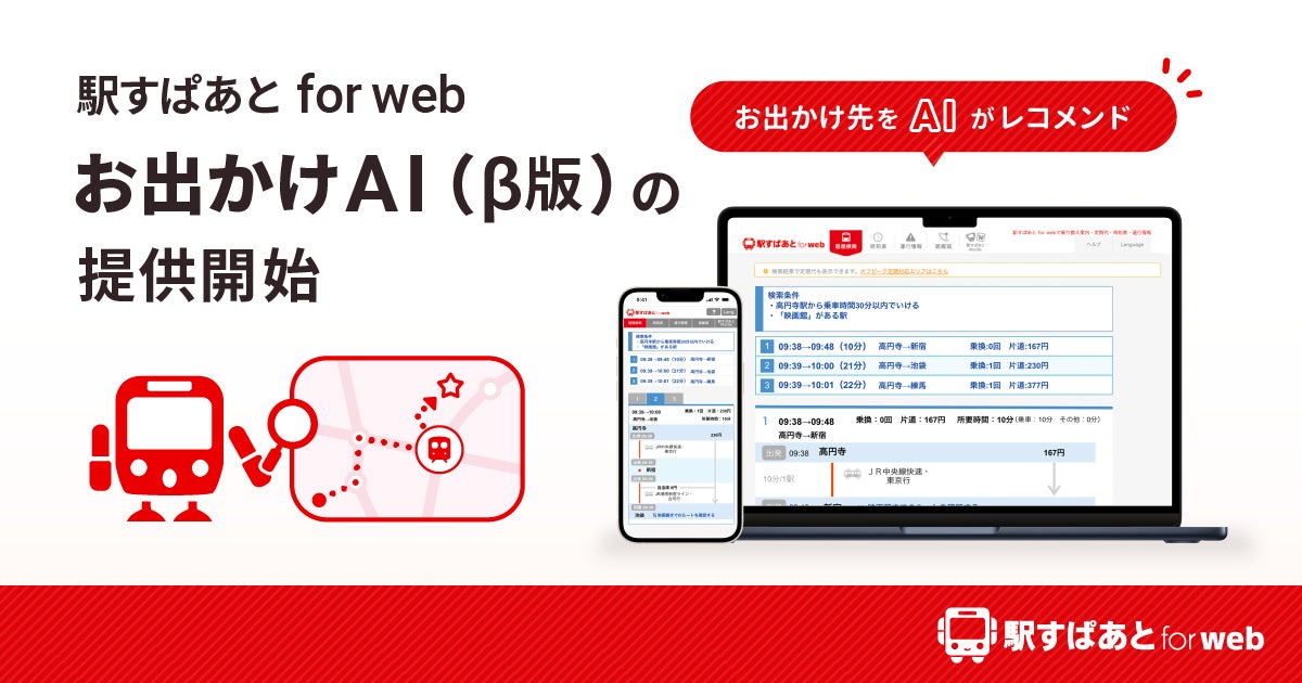 【国内経路検索サイト初※】「駅すぱあと for web」がChatGPTを活用した「お出かけAI(β版)」の提供を開始します