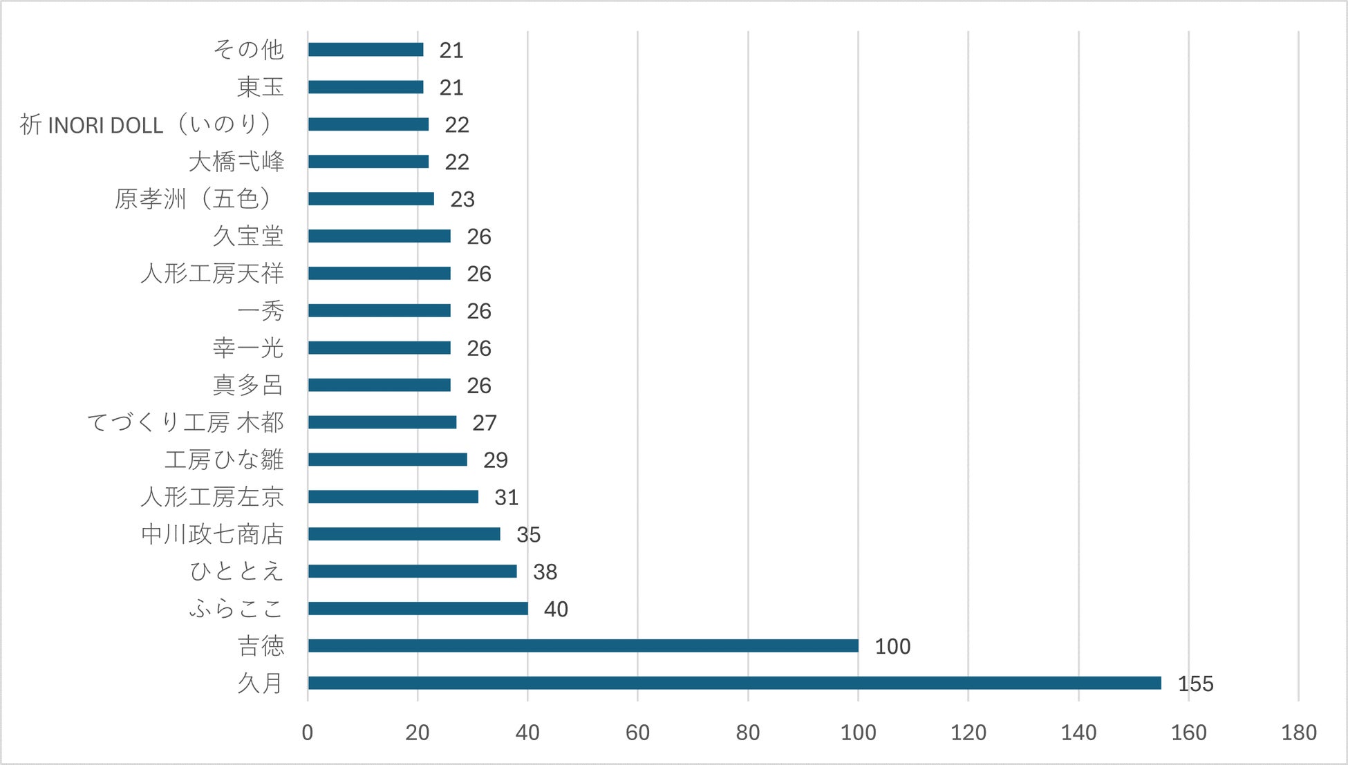 トップ5社以外の20社以上についても、「知っている」との回答が17名(2%)~31名(4%)に上り、選択肢が広く分散している点が明らかになりました。雛人形を選ぶ際、さまざまなブランドが検討対象として挙がっているのがうかがえます。
