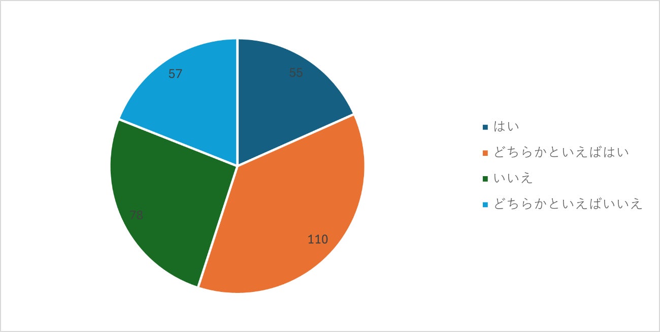 「はい」と答えた方が55名(18%)、「どちらかといえばはい」と答えた方が110名(37%)を占め、合わせると過半数となる165名(55%)の回答者がブランドの知名度に影響力を感じています。一方で、「いいえ」と「どちらかといえばいいえ」を選んだ方は合計135名(45%)となり、知名度はそれほど重視していない方も一定数いるのがわかりました。