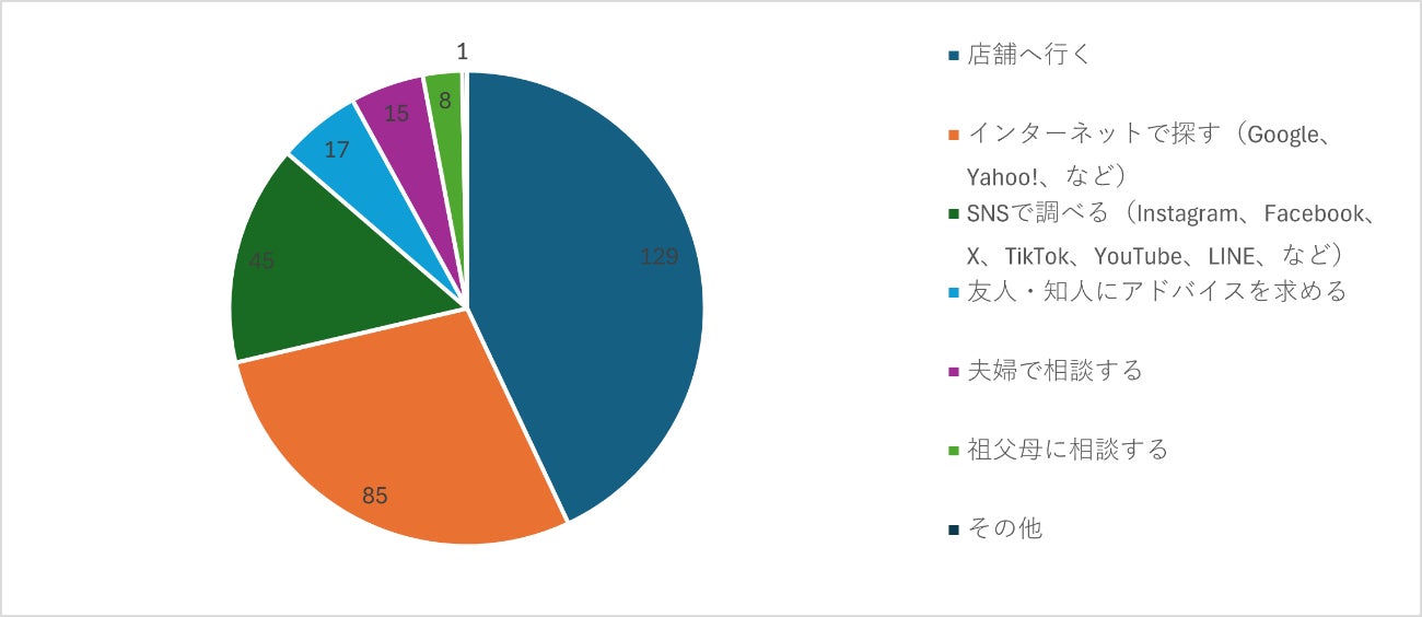次に「インターネットで探す」が85名(28%)を占めており、オンラインで情報収集する方も比較的多い傾向です。複数のブランドや価格を比較しやすいうえ、自宅にいながら手軽に情報を得られる点が魅力といえるでしょう。