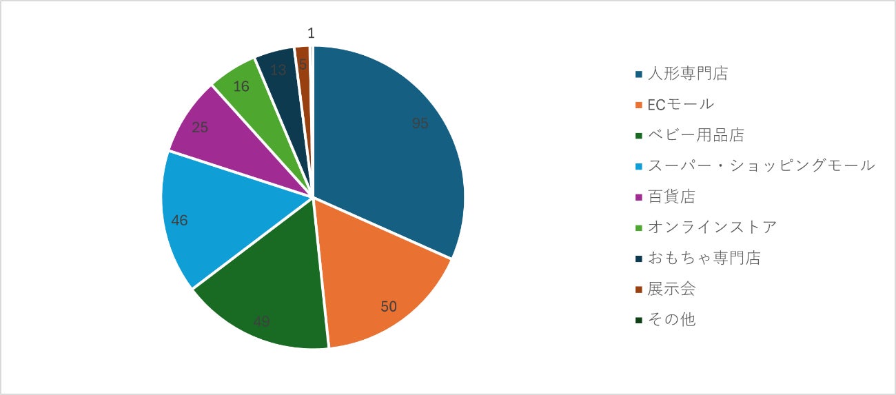 雛人形の購入先では「人形専門店」が95名と最も多くの方に選ばれており、全体の32%を占めています。専門店は、伝統的な人形を取り扱っている場合が多く、品質が保証されているため安心して購入できるのがメリットです。また、専門的な知識を持つスタッフからのアドバイスを受けられるのも、雛人形のような特に失敗したくない買い物での安心感を高め、支持される要因となっています。
