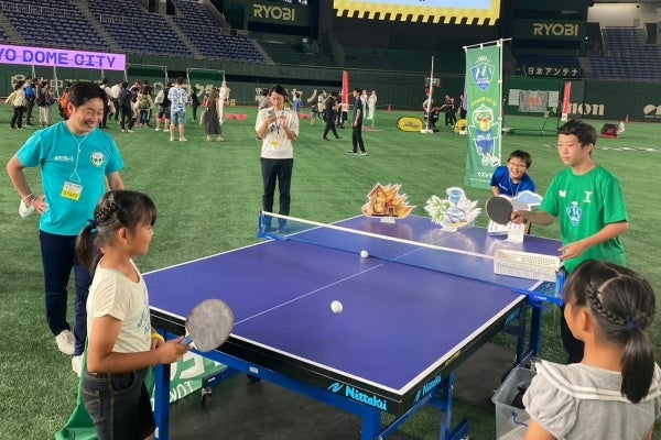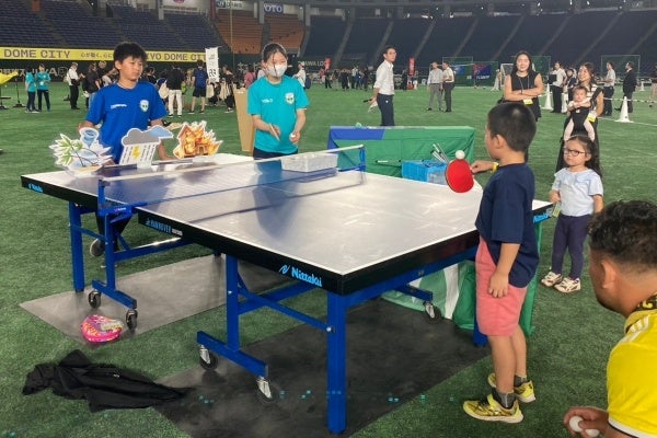 イベント開始前に東京ドームで行われていたプロ野球の試合が、延長12回までもつれる長時間となったため、イベント時間が短縮となってしまいましたが、参加した子どもたちは元気に体を動かしながら防災の意識を高めてくれた様子。見守っていた親御さんも、このイベントを通して各競技にも関心を寄せてくださり、「卓球の試合を見に行ってみたい」というお声もいただきました。