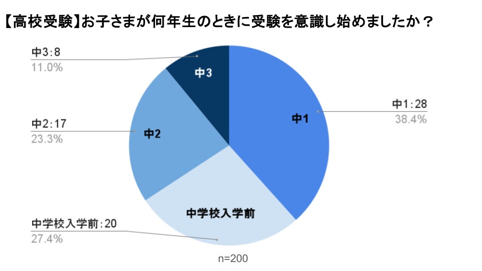 高校受験を意識し始めた学年は「中学1年生」が38.4%、「中学校入学前」が27.4% 7割近くの家庭が「中学1年生」までには高校受験を意識 |