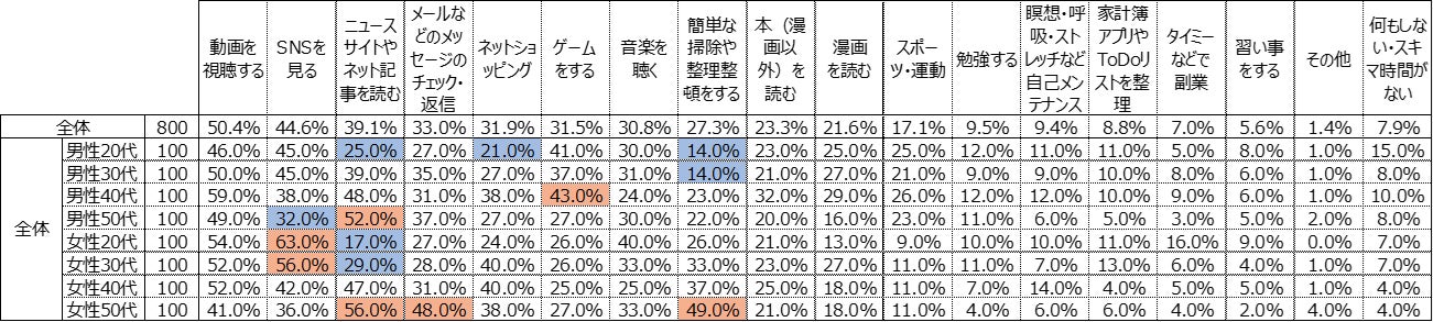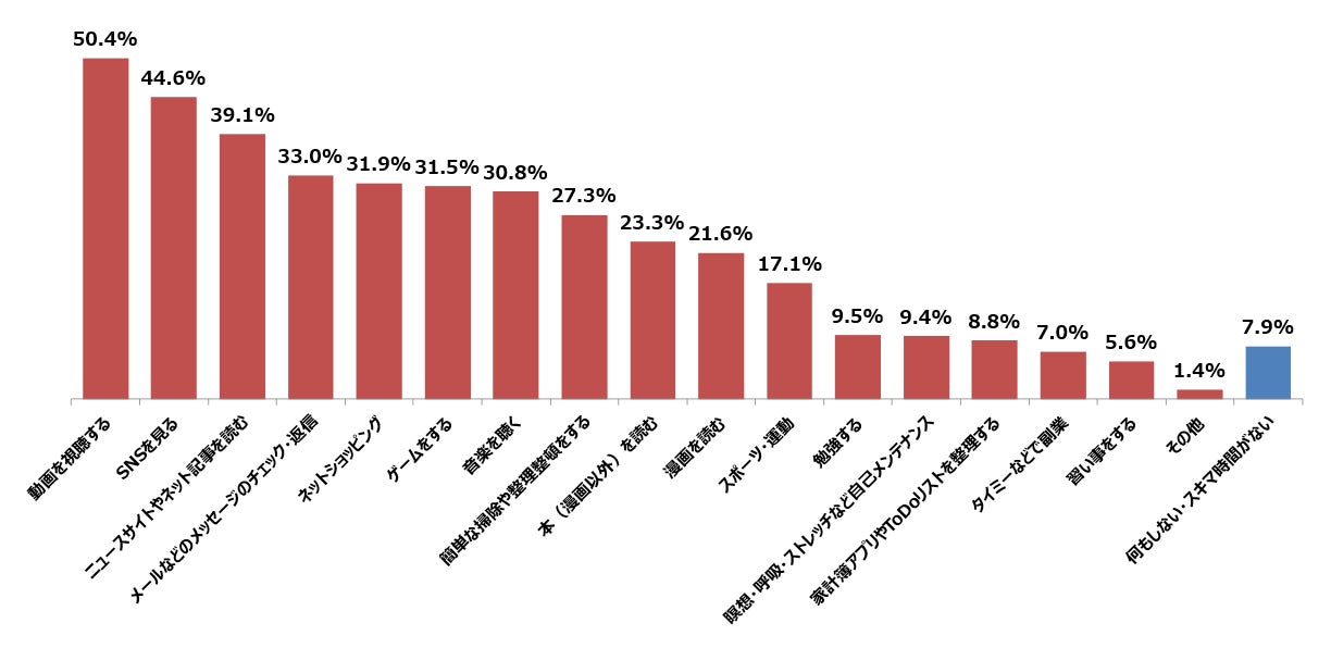 Q.あなたが「スキマ時間」にやることが多いことを教えてください。(n=800、複数回答)