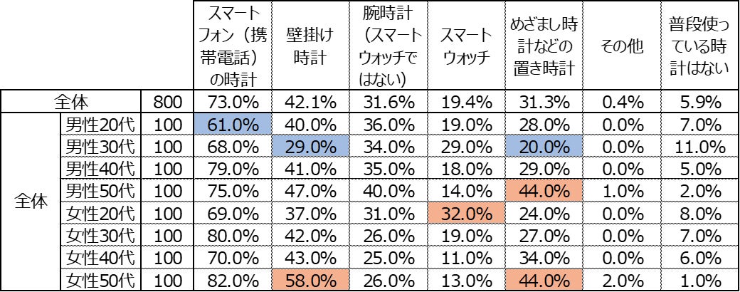 全国の男女800人に聞いた、「【時間】と【時計】に関する調査」を発表