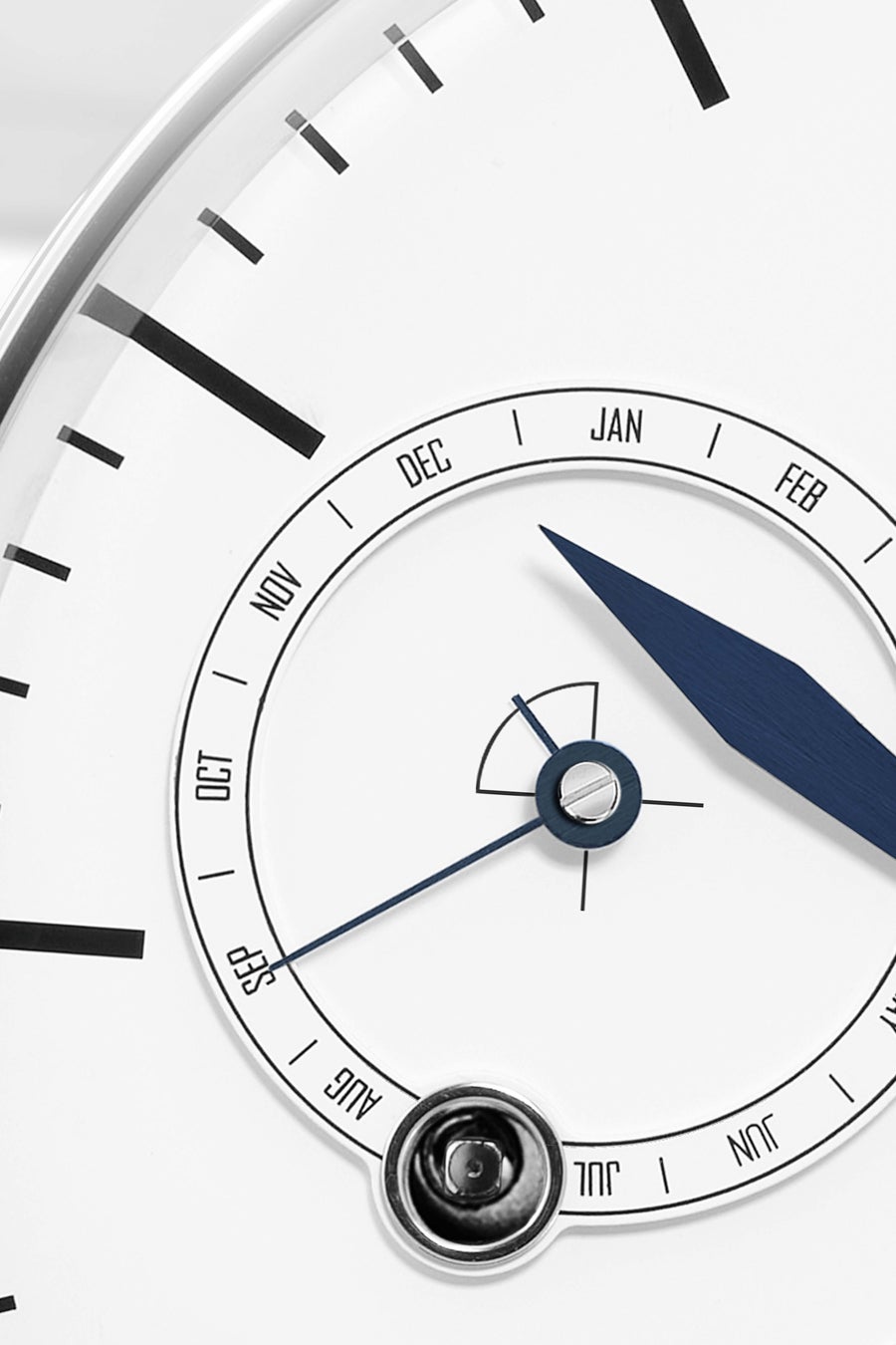 現在はクロック製造のみにとどまらず、航空業界、自動車業界をはじめほぼあらゆる業界にパーツを提供するサプライヤーとしての一面も持ち、今後のさらなる成長も期待されています。 2023年に創業101周年を迎えるにあたりヘルムレとして新たな商品開発に取り組みました。 それが同社初のパーペチュアルカレンダーモデルです。
