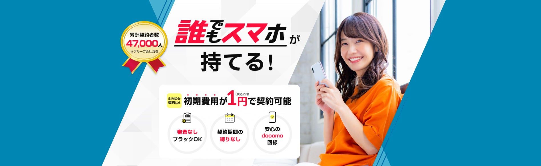 2023年1月16日よりサービスを開始した「誰でもスマホ」は、文字通り“誰でもスマートフォンの契約ができる”サービスです。過去に携帯電話を滞納し、所謂「ブラックリスト入り」してしまった方でも、必要な身分証さえあればご契約が可能です。