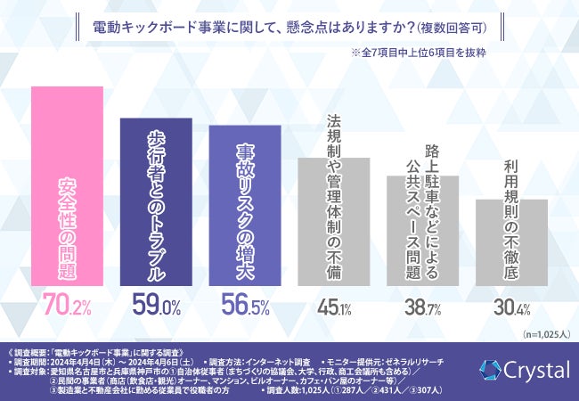 Crystal株式会社(所在地:愛知県名古屋市西区、代表取締役社長:蒼佐 ファビオ)は、愛知県名古屋市と兵庫県神戸市の自治体従事者、民間の事業者、製造業と不動産会社に勤める従業員で役職者の方を対象に、「電動キックボード事業」に関する調査を実施しました。