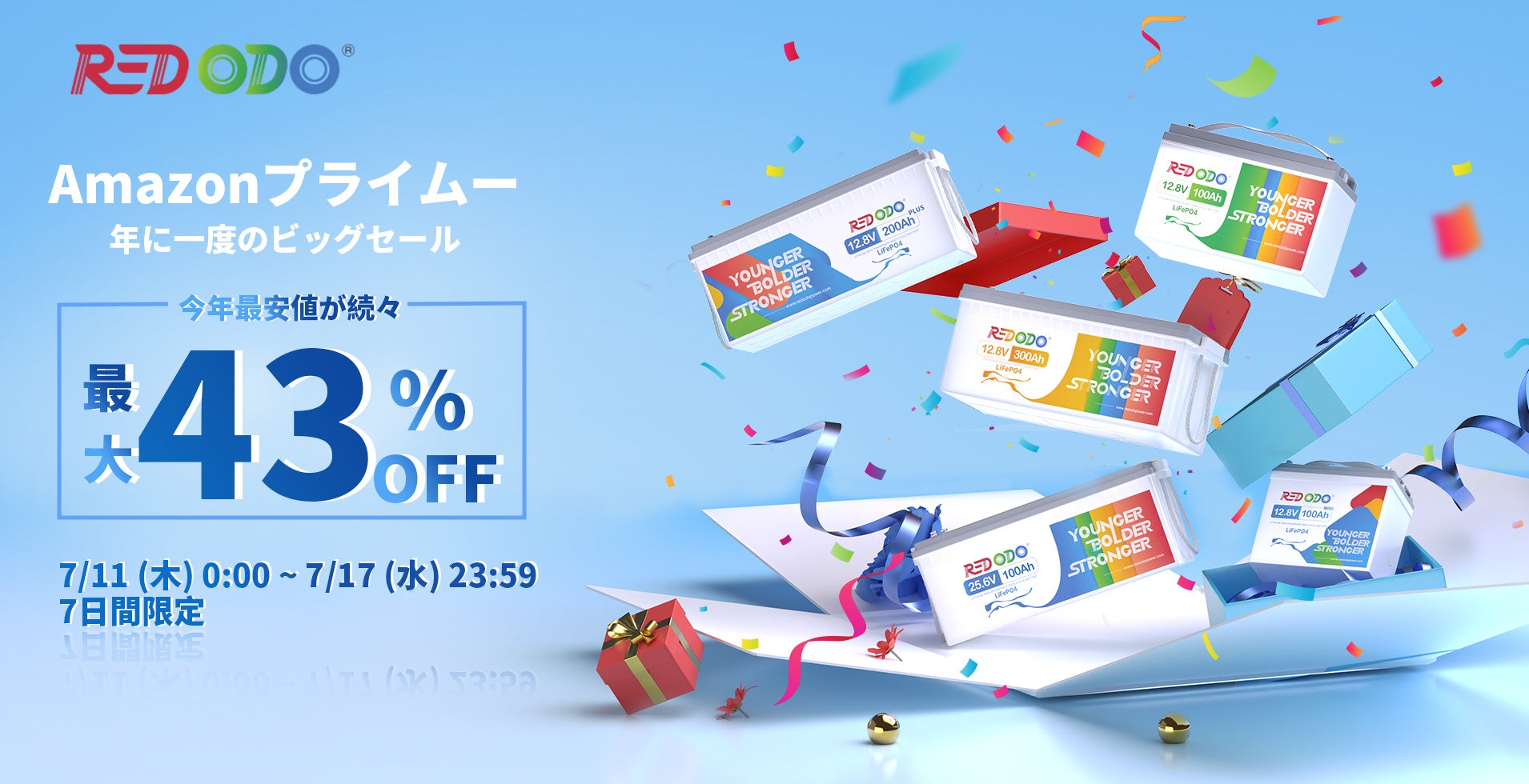 Redodo(レッドオド)は、7月11日(木)00:00から7月17日(水)23:59までの7日間にわたってAmazonで開催される「プライムデー先行セール」および「プライムデー」において、リン酸鉄リチウムイオンバッテリーなどを最大43%OFFにて販売。