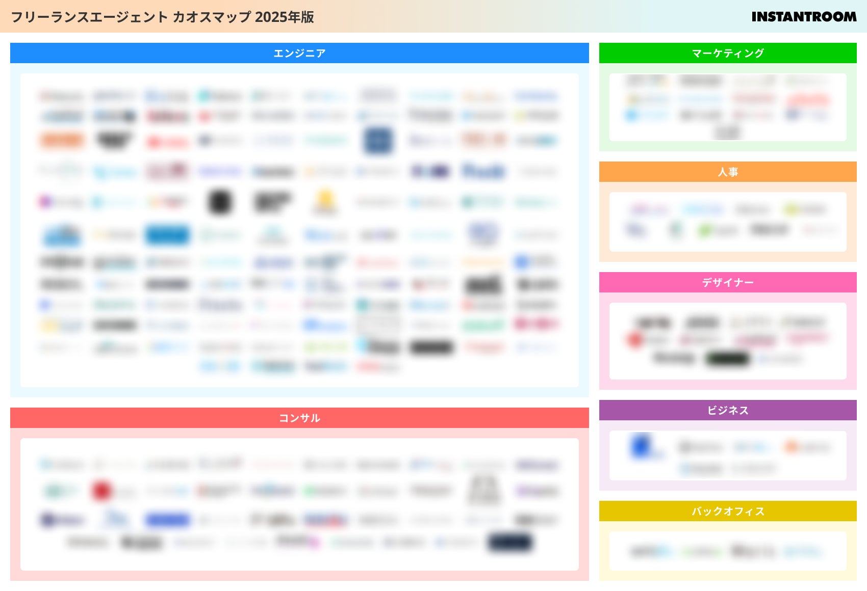 フリーランスエンジニア・ITフリーランスの案件・求人検索サイト『フリーランスボード』(https://freelance-board.com/)を運営するINSTANTROOM株式会社(本社:東京都渋⾕区、代表取締役:曽根弘介)は「フリーランスエージェント カオスマップ 2025年版」を公開しました。