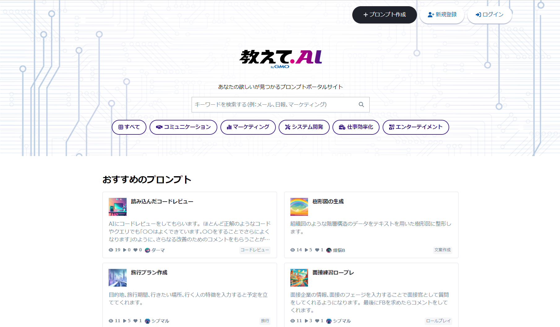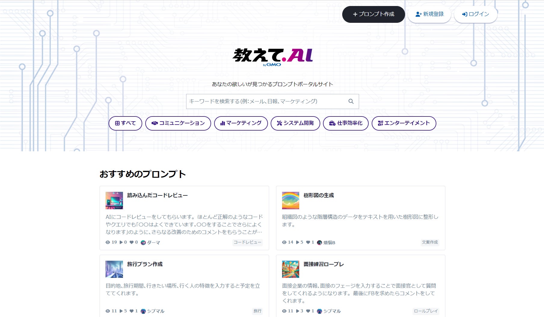 【生成AIプロンプトポータル「教えて(おしえて).AI(えーあい)」byGMO】(URL:https://oshiete.ai)