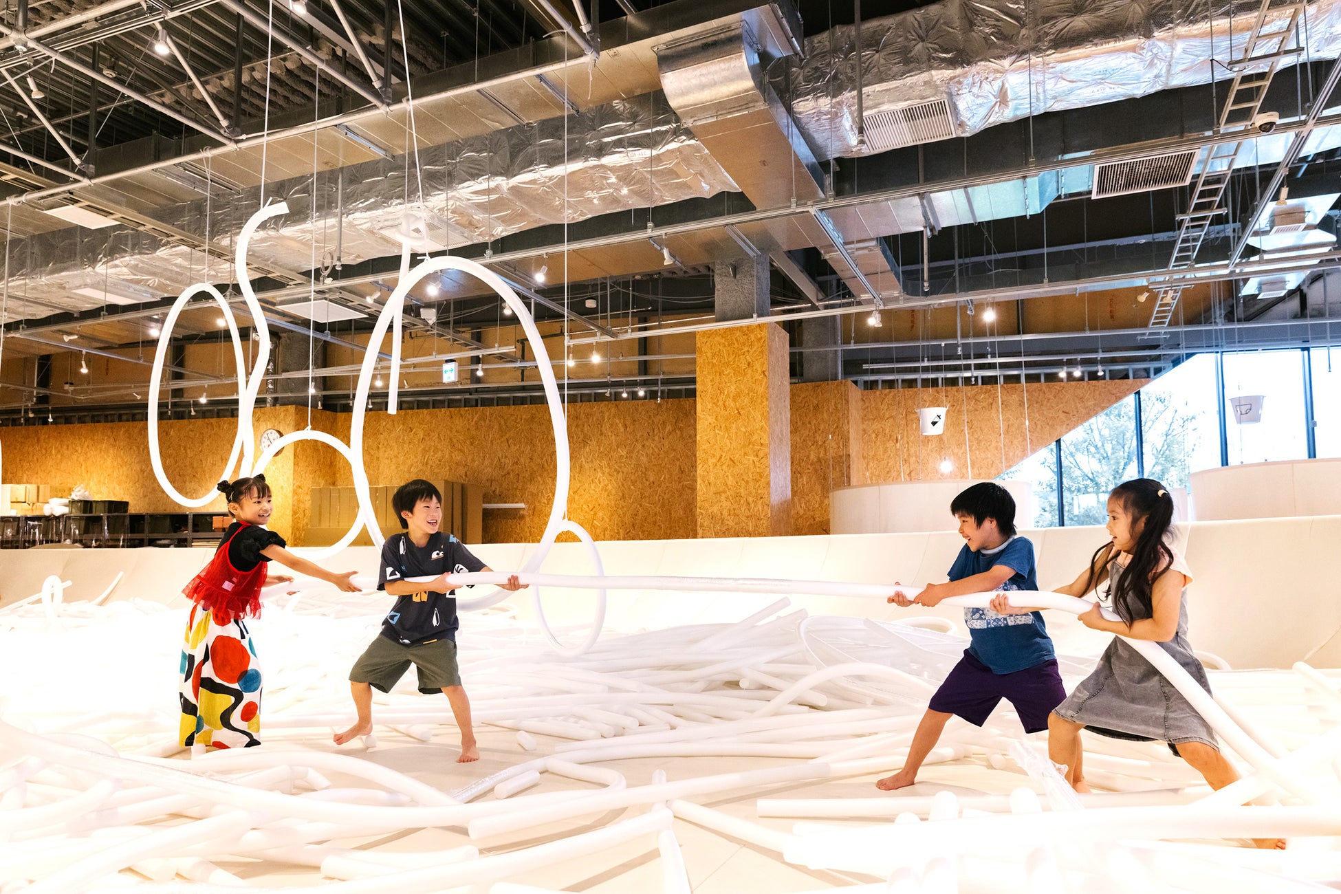 土木建築用シーラントバックアップ材「ミナフォームマルマル」、PLAY! PARKの大型遊具「ヌードルおばけ」では子どもの遊具として使用中