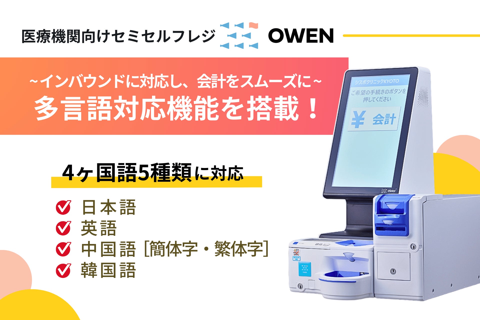 医療機関向けセミセルフレジ『OWEN(オーエン)』、多言語対応機能(4ヶ国語5種類)搭載で、外国人患者様の会計をサポート