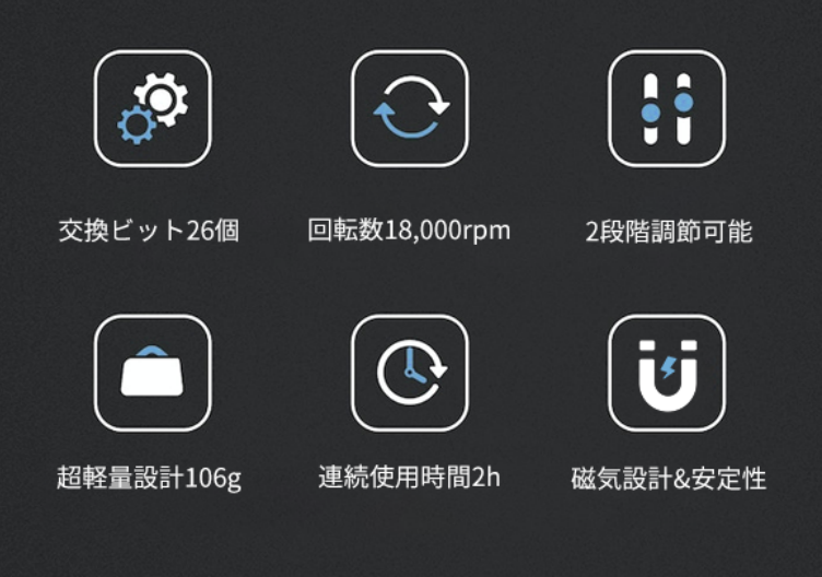 26個の交換ビットでDIYの幅が広がる、創作活動をもっと自由に!スピード調整可能な超軽量コードレスミニルーター「DUKA EP1」