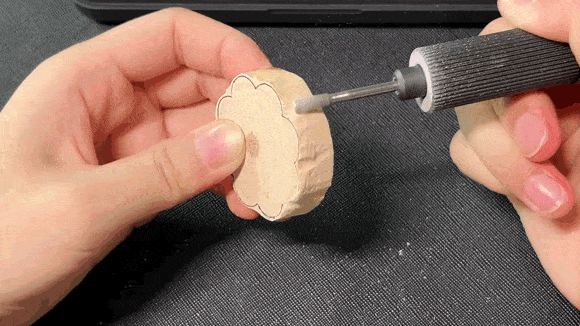 硬い金属ビットを使用。卵、木材などにデザインを描き削り出すことができ、初心者でも簡単です。